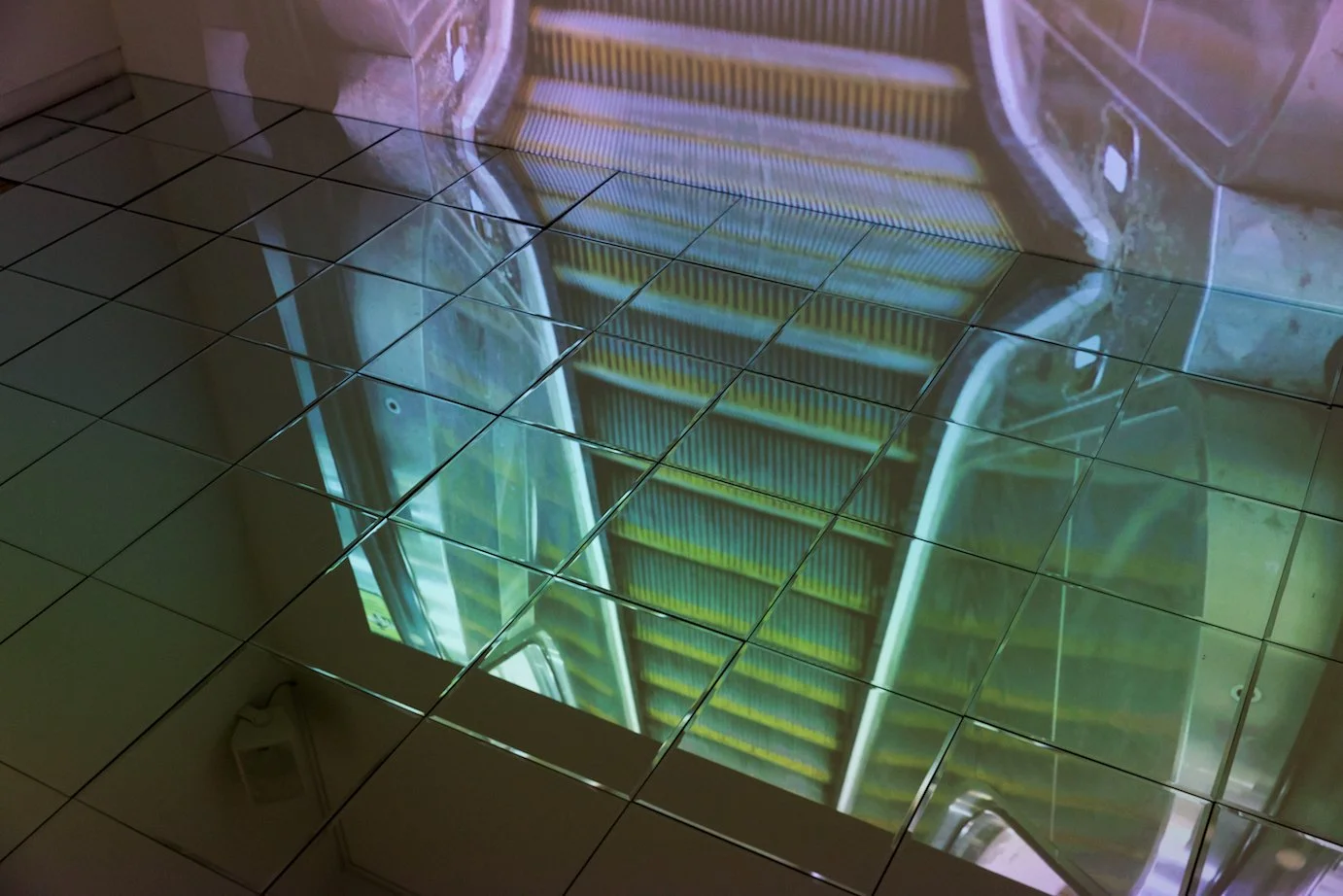 Zearfoss’ studio-based projects typically develop as video, sound and sculptural installation. They have participated in numerous group exhibitions in the USA, including YesX1000 (2015) in Chicago, and Bruising Darkness (2014) in Baltimore. In 2017 their exhibition Intents and Purposes at the Andrew Rafacz Gallery in Chicago included a number of different works in a variety of media. One of the works, Dirge (2017), consisted of a large-scale single video and sound installation of a moving escalator travelling upwards. A soundtrack composed of the atypically loud, screechy sounds coming from the escalator, is mixed with 3 vocalists who make interpretations of the escalator sounds. While cacophonous and domineering, it is a beautiful lament, one made by human and machine, in the context of a new era in politics in the USA as Trump took up the presidential seat.