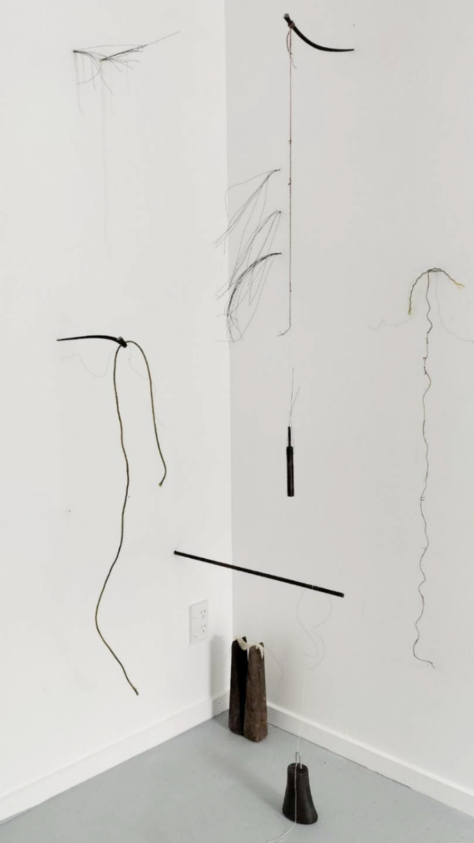 The materials used in Waipā Gothic reference Justine's family’s farming history. They intervene on the walls and floor, evoking unease in the space, at once unnatural and familiar. The work sits in the context of the Pākehā preoccupation with the truth of this identity and recollects childhood memories. Justine is curious and somewhat unsure about the way in which Pākehā have adopted the term ‘gothic’. She is seeking to better understand where her work might sit in the context of this term that has been defined by the editors of The Darker Side of Kiwi Culture as 'endemic to New Zealand's self-representation'.